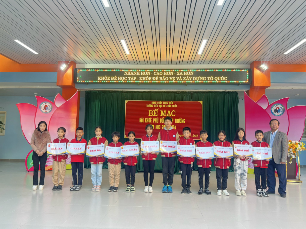 - Những ngày qua, Trường TH Vũ Xuân Thiều tổ chức các môn thi đấu thể thao trong khuôn khổ của HKPĐ. Năm nay, trường tổ chức cho các khối lớp tham gia thi đấu các môn gồm: Chạy 60m, cầu lông, chạy tiếp sức, kéo co... Để HKPĐ diễn ra thành công, ngay từ đầu năm học, ban giám hiệu nhà trường đã xây dựng kế hoạch, tuyên truyền, hướng dẫn, cũng như tạo điều kiện để HS tham gia thi đấu. Hội khỏe Phù Đổng cấp trường thực sự trở thành ngày hội thể thao, là sân chơi bổ ích để HS rèn luyện sức khỏe, gắn kết và tạo tinh thần phấn khởi trong học tập. Qua đó, bồi dưỡng, phát triển tài năng ở các môn thể thao để tham gia HKPĐ các cấp