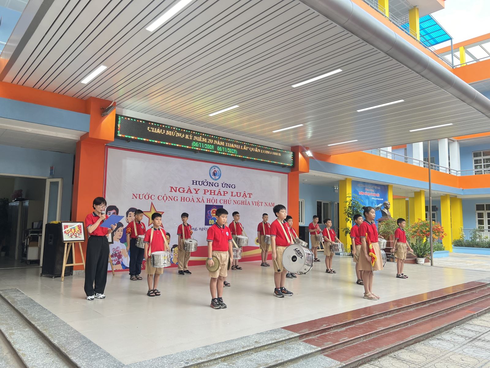 Sau nghi lễ chào cờ nghiêm trang, các con học sinh được tham gia tìm hiểu pháp luật thông qua hoạt động “Tuyên truyền măng non” về một số các Luật hiện hành như Luật Giao thông đường bộ; Luật Giáo dục; Luật Trẻ em; Luật Bảo vệ môi trường; Luật An ninh mạng; Luật phòng, chống tác hại của thuốc lá, …