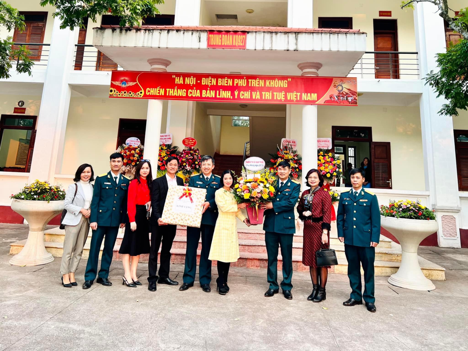 Cán bộ, giáo viên, nhân viên nhà trường tới chúc mừng các đồng chí cán bộ, chiến sĩ đơn vị kết nghĩa tại Trung đoàn Không quân 927.
