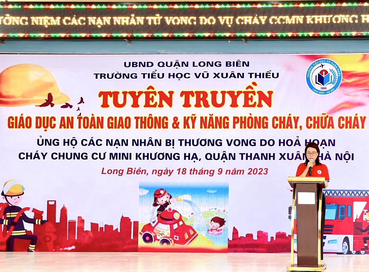 Không chỉ liên kết với bên công an tuyên truyền cho cán bộ giáo viên, nhân viên nhà trường cùng các con học sinh về các kĩ năng phòng cháy chữa cháy, cô Hứa Thị Thu Huyền-Hiệu trưởng nhà trường đã sáng tác bài hát: “Phòng chống hoả hoạn” phổ nhạc Trống cơm dành tặng các con học sinh. Thông qua bài hát, cô Huyền muốn tuyên truyền ý thức phòng cháy chữa cháy đến tất cả mọi người.