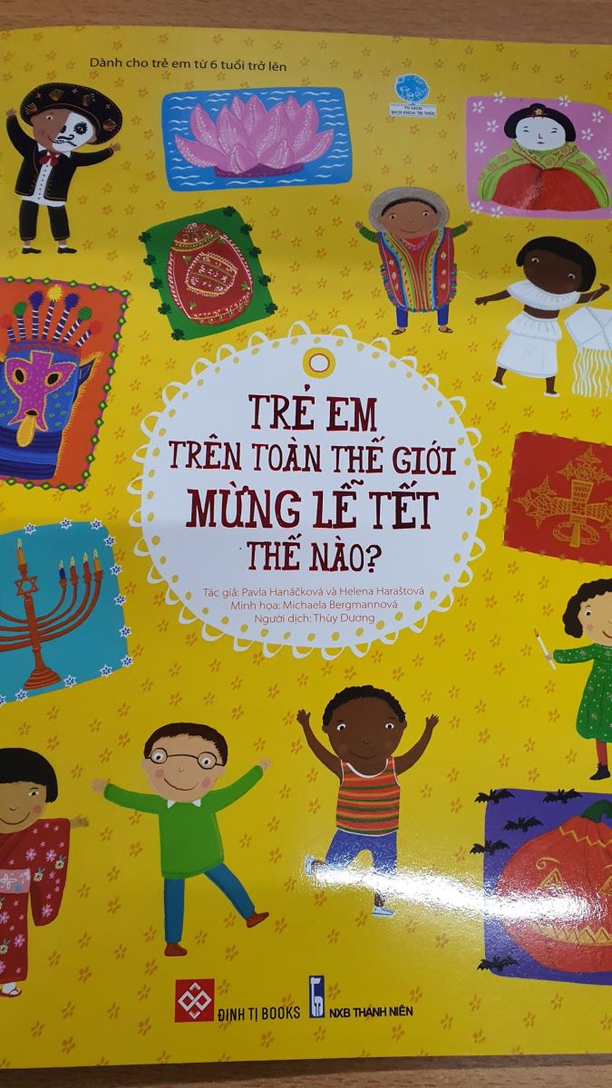 . Tết của người Việt là được ở bên những người thân, thưởng thức những món ăn đậm nét cổ truyền dân tộc, những người thân luôn dành cho nhau những lời chúc tốt đẹp, Tết là để tận hưởng niềm vui bất tận…Tất cả chúng ta đều thích mừng lễ Tết như vậy. Thế nhưng các bạn có từng tự hỏi ở những nước khác nhau người ta mừng lễ tết như thế nào không? Vậy hôm nay cô sẽ cùng các bạn vòng quanh thế giới để xem các bạn nhỏ trên thế giới mừng lễ tết thế nào nhé. Trong buổi giới thiệu sách tháng này cô xin trân trọng giới thiệu cuốn sách: “ Trẻ em trên toàn thế giới mừng lễ tết thế nào” – người dịch Thùy Dương. Sách được nhà xuất bản Thanh niên ấn hành năm 2020, khổ sách,20,5 *27,6 cm dày 34 trang.