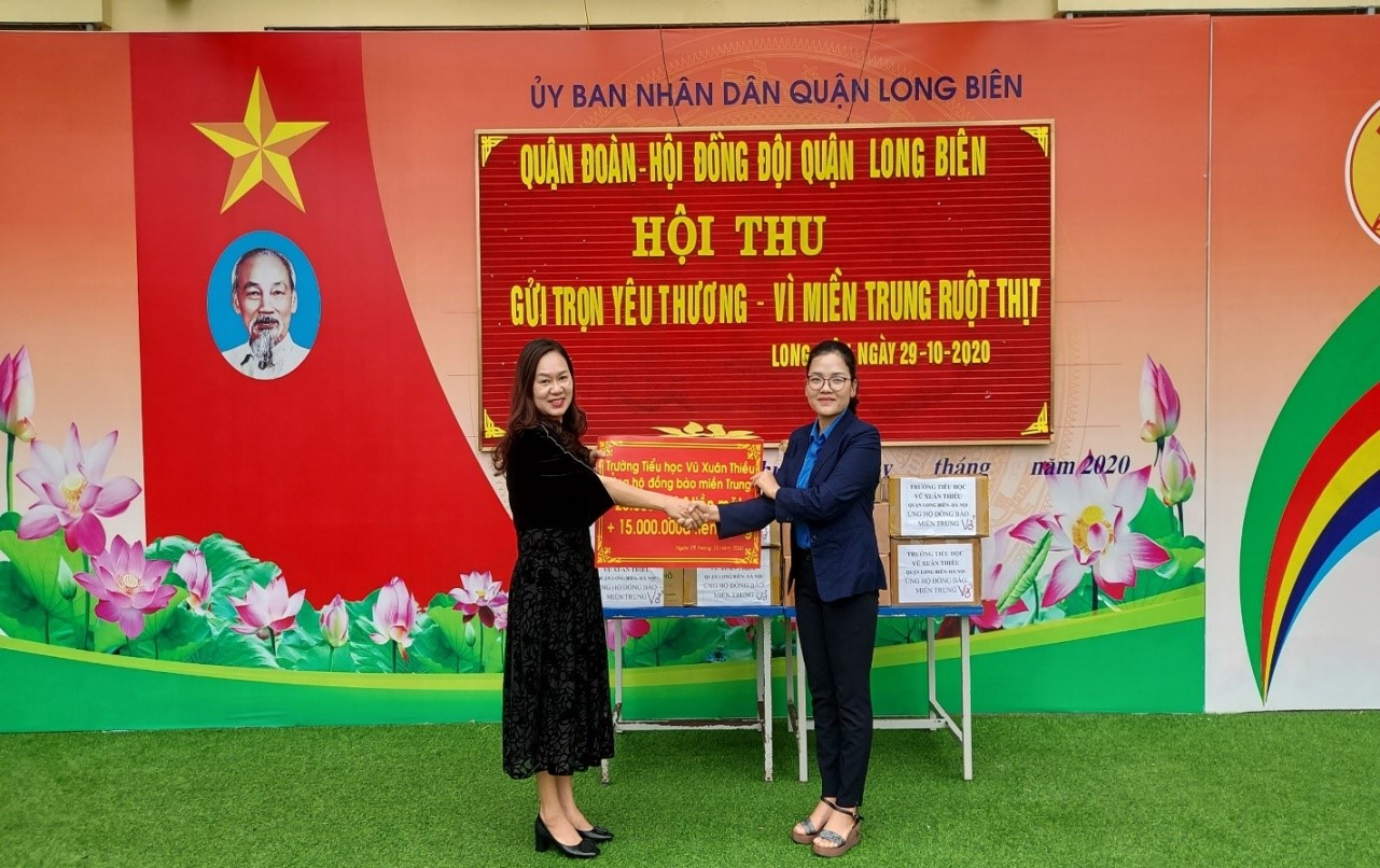 Toàn bộ số tiền và vật phẩm ủng hộ đã được nhà trường chuyển qua Quận Đoàn- Hội đồng Đội quận Long Biên.