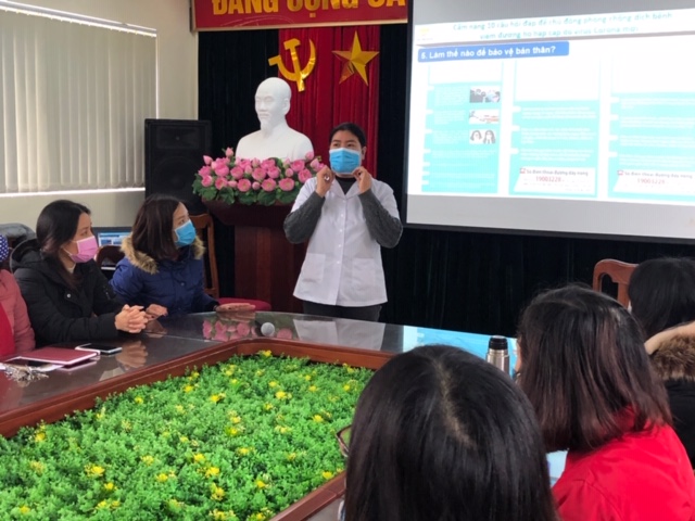 Trước sự nguy hiểm của dịch bệnh, ngay sau buổi tập huấn về nCoV do quận Long Biên tổ chức, BGH trường đã chỉ đạo bộ phận y tế trường tập huấn các nội dung về phòng chống nCoV tới 100% CBGVNV nhà trường