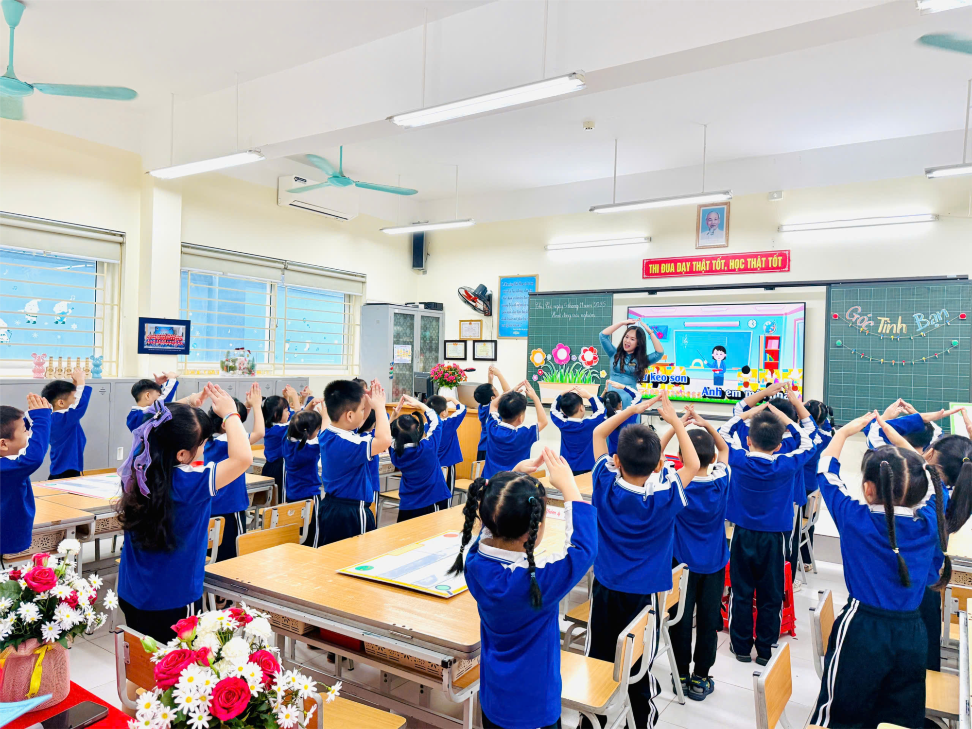 Các tiết dạy được triển khai theo hướng tăng cường hoạt động của học sinh, chú trọng việc tạo cơ hội để các em tham gia, luyện tập và thực hành kiến thức. Giáo viên tổ chức đa dạng hình thức học tập như hoạt động nhóm, hoạt động cá nhân, trò chơi học tập, thao tác trực quan, giúp học sinh tiếp thu bài nhẹ nhàng, tự nhiên và phù hợp với đặc điểm lứa tuổi lớp Một.