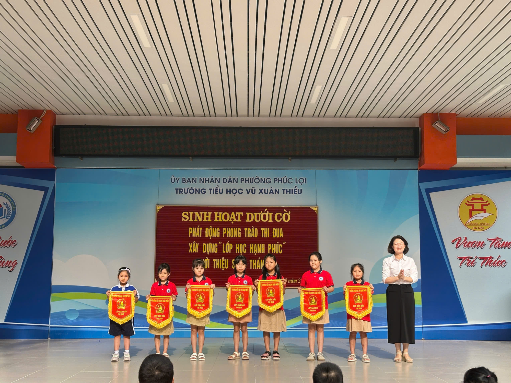 Sau lễ chào cờ trang nghiêm, cô giáo Tổng phụ trách Đội đã phát động phong trào thi đua xây dựng “Lớp học hạnh phúc”. Phong trào nhằm nâng cao ý thức của học sinh trong việc bảo vệ môi trường học tập và rèn luyện nếp sống văn minh, thân thiện như phân loại rác thải tài nguồn, chăm sóc cây xanh, trang trí và giữ gìn lớp học xanh thân thiện. Xây dựng tình bạn đẹp, học sinh yêu thương nhau, nói không với bạo lực học đường.